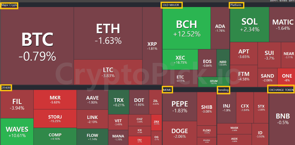 알트코인은 위의 사진에 노란색 네모에 적혀있는 것처럼 메이저코인, (구)메이저 코인, 플랫폼 코인, 거래소 코인, 트랜딩 코인, 밈코인, 기타 코인으로 분류해 볼 수 있습니다. 하나하나 알아보면 정말 좋은 코인들이고, 다을 의미 있는 코인들이지만 투자를 목적으로 하는 우리에게는 메이저 코인과 (구) 메이저 코인 정도의 종류만 알고 있으면 좋을 것 같습니다. 메이저 코인과 (구) 메이저 코인은 수많은 알트코인들 중에서도 시가총액이 큰 코인들을 지칭하기 때문에 시세의 변동성이 상대적으로 적은 편이기 때문입니다.