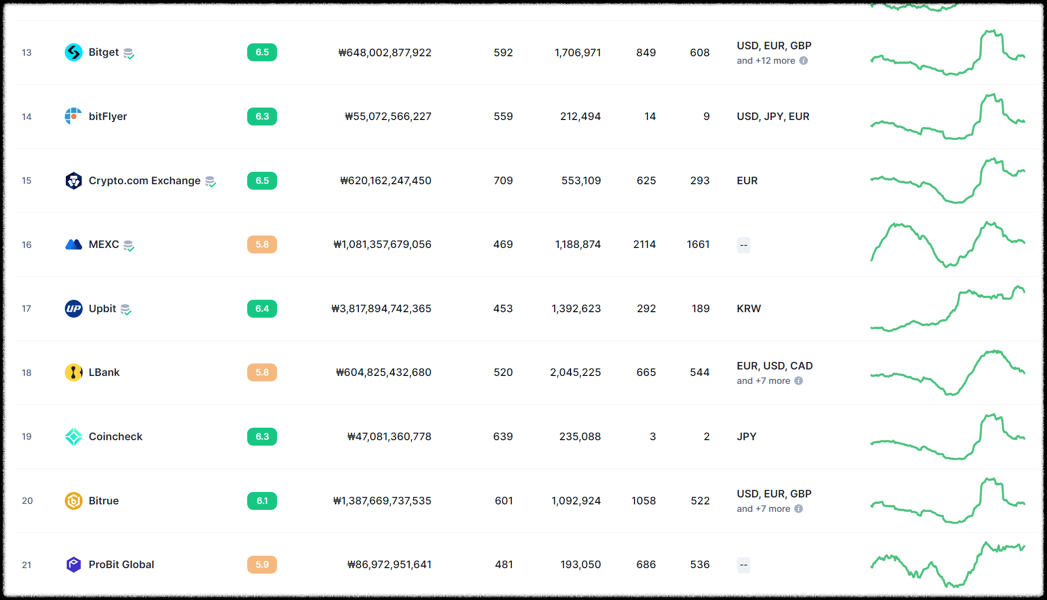 현재 MEXC 거래소의 현물 거래 순위를 살펴보면 16위에 위치하고 있습니다. 국내거래소인 업비트보다 순위가 높고, 거래량도 꽤나 높은 수준입니다. 거래소의 점수는 업비트보다는 낮지만, 그 이유는 아직 사람들에게 많이 알려지지 않았기 때문입니다. 업비트보다 유동성도 많습니다. 그리고 MEXC 거래소는 런치패드와 킥스타터 주기가 굉장히 빠른 편으로 신규 프로젝트에 대한 초기 접근성이 유용해서 MEXC 거래소에 대한 사람들의 관심이 많아지고 있습니다. 새로운 프로젝트가 출시한다 해도 거래소에 상장되기까지 시간이 오래 걸리기 마련인데 MEXC 거래소에서는 그런 걱정이 조금은 줄어들 것입니다.
