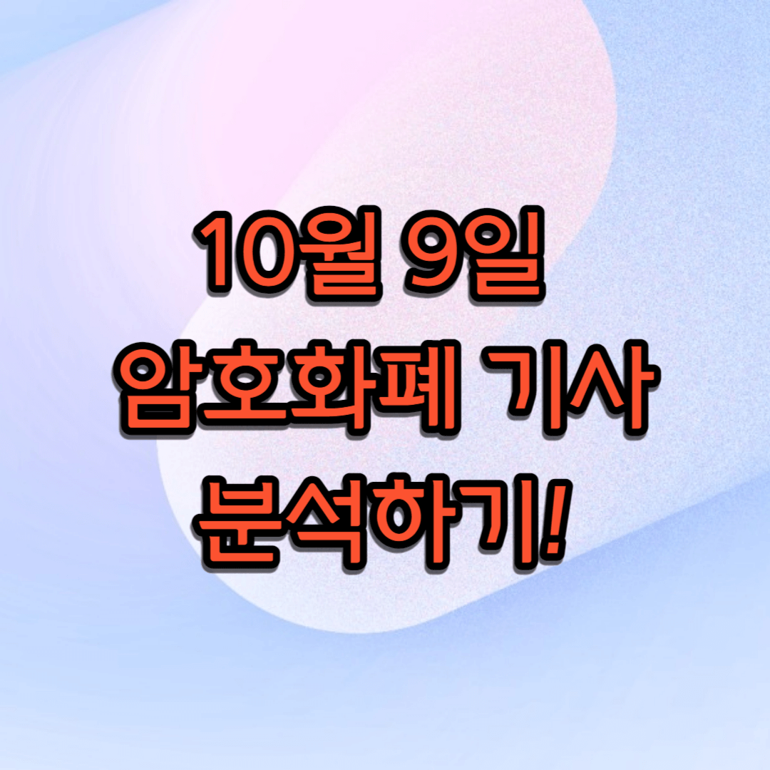 10월 9일 경제 뉴스에 올라온 암호화폐에 대한 뉴스를 확인해 보겠습니다.